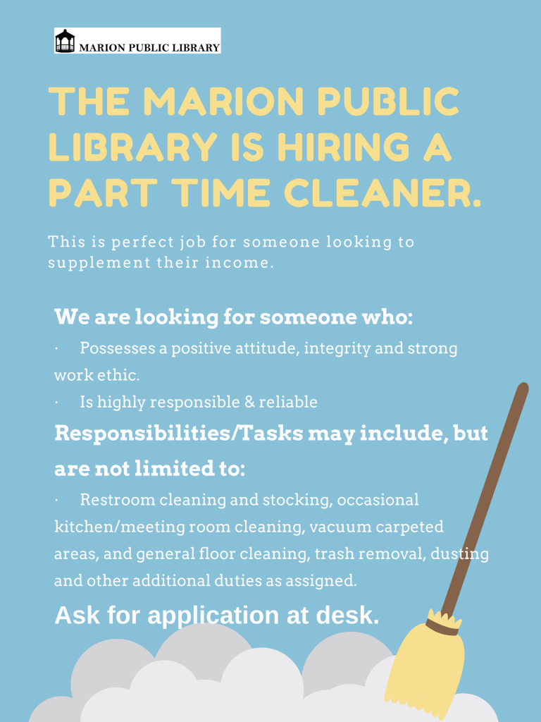 The-Marion-Public-Library-is-hiring-a-part-time-cleaner..png